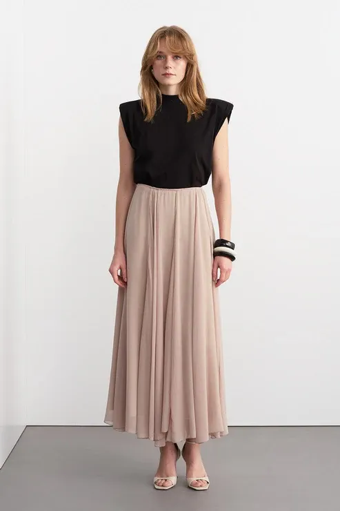 Eva Parçalı Uzun Etek Bej - 38