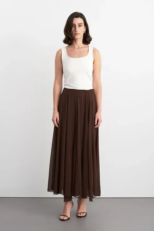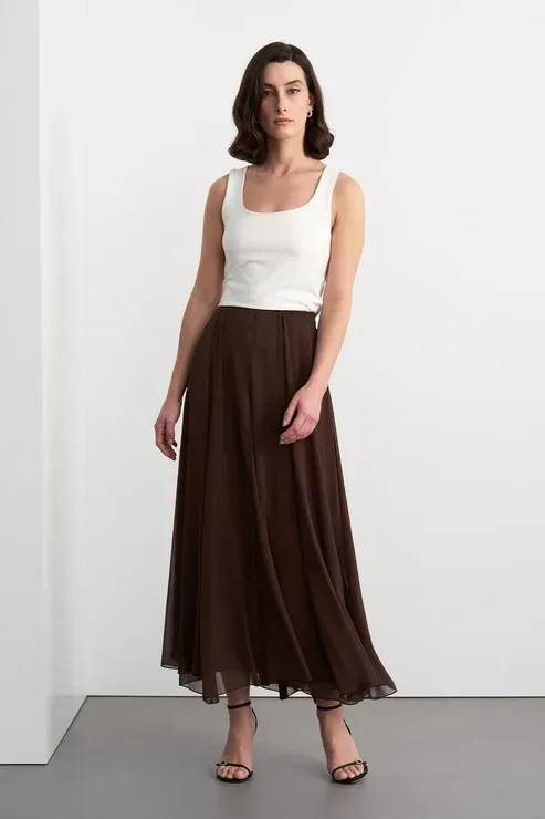 Eva Parçalı Uzun Etek Kahverengi - 40
