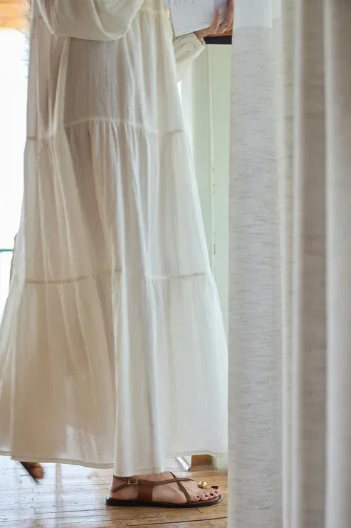 Joli Bağlamalı Şile Bezi Uzun Elbise Ekru, pamuk karışımlı şile bezi kumaşı sayesinde nefes alabilirlik sağlayarak gün boyu konforlu bir kullanım sunar. Dikey yaka ve yarım pat detayı modern bir hava yaratırken, etek kısmındaki katlı kesim ve omuz büzgüleri şıklığına şıklık katar. Balon kol ve kol ucu lastikleri, elbiseye hareket özgürlüğü sunar. Yarım pat ve bağlamalı tasarımıyla, zarif bir siluet elde edilirken, her anınıza rahatlıkla uyum sağlar. Gündüz için sandaletler ve rahat ayakkabılarla, akşam için ise topuklu ayakkabılarla şıklığınızı tamamlayabilirsiniz. Yaz aylarında hem şık hem rahat bir seçenek arayanlar için ideal!