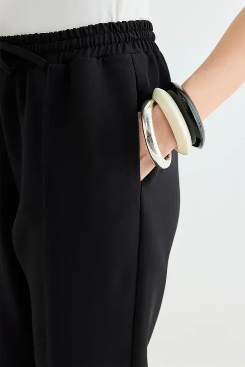 Ella likralı boru paça pantolon , likra karışımlı esnek kumaşıyla gün boyu hareket özgürlüğü ve rahatlık sunar. Yüksek bel tasarımı, belinizi vurgularken boru paça kesimi bacak boyunuzu daha uzun gösterir. Kırışmayan ve formunu koruyan yapısıyla hem günlük kullanımda hem de özel günlerde pratik bir şıklık sağlar. Oversize gömleklerle casual bir tarz, şık bluz ve ceketlerle ise modern ve zarif bir görünüm oluşturabilirsiniz. Çok yönlü ve zamansız tasarımıyla her dolabın kurtarıcı parçası olmaya aday!