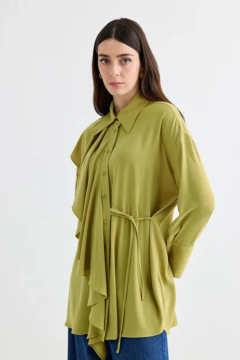 KB Morina Volanlı Bağlamalı Gömlek Yeşil - 1