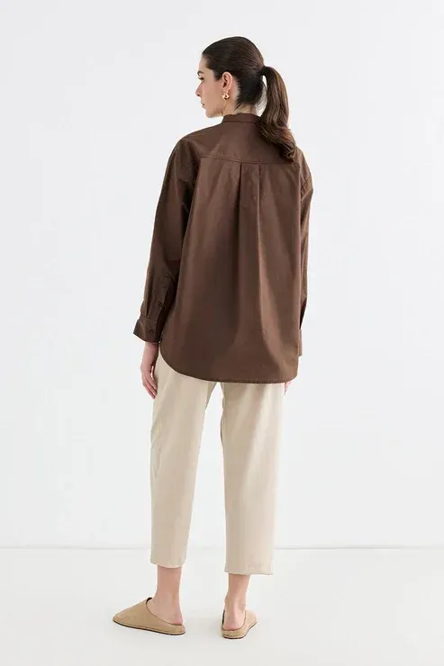 Massi dikiş detaylı gömlek, pamuk içerikli, terletmeyen yumuşak dokusuyla gün boyu rahatlık sunarken şıklığınızdan ödün vermemeniz için tasarlandı. İnce işçilikle hazırlanmış dikiş detayları, klasik kesime modern bir hava katarak her ortamda dikkat çekmenizi sağlar. Palazzo pantolonlarla rahat ve şık bir kombin oluşturabilir, pileli eteklerle feminen bir görünüm elde edebilirsiniz. Ofis stilinden günlük kullanıma kadar her anınıza uyum sağlayan bu gömlek, gardırobunuzun tamamlayıcı star parçası olacak!
