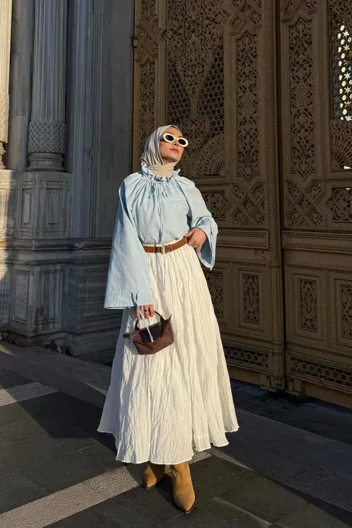 Nora piliseli uzun etek , hafif ve terletmeyen pamuklu kumaşıyla gün boyu rahat hissetmenizi sağlar. Piliseli ve dökümlü tasarımıyla hem şık hem de özgürce hareket edebileceğiniz bir kullanım sunar. Vücudu nazikçe saran zarif bir görünüm oluşturarak arkadan fermuarı sayesinde kolayca giyip çıkarabilirsiniz. Astarlı yapısı ekstra konfor sunar. Günlük kombinlerde bluzlarla sade bir tarz yaratabilir, özel davetlerde şık bir gömlekle stilinizi tamamlayabilirsiniz. Zamansız tasarımıyla dolabınızın kurtarıcı parçalarından biri olacak!