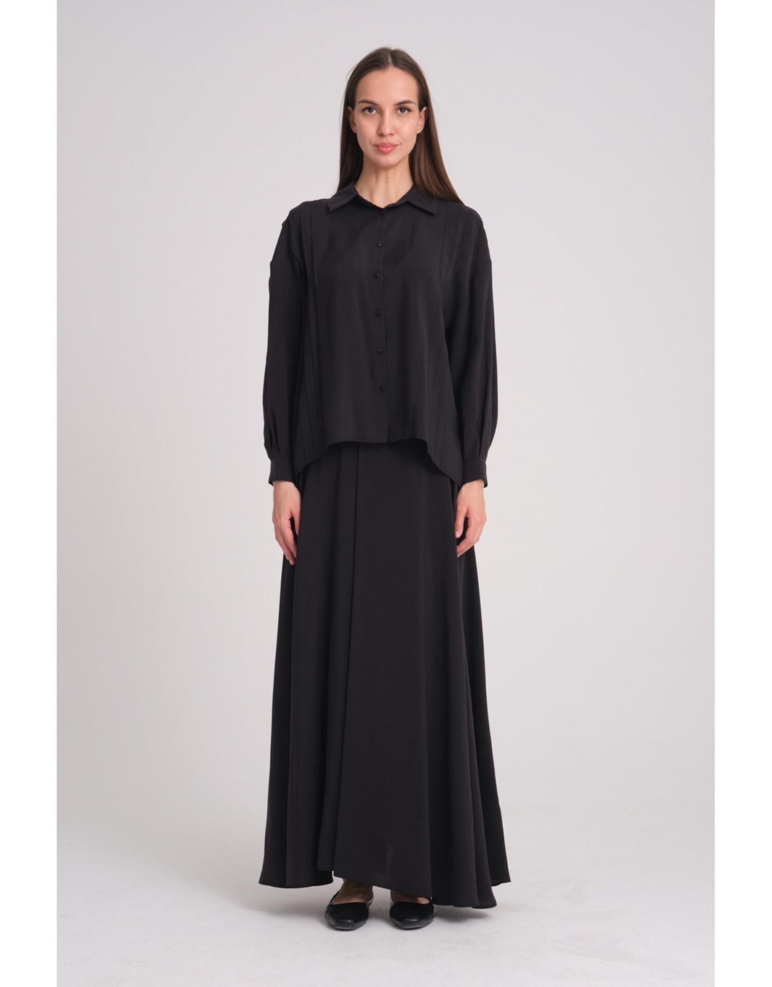 Nervür detaylı düz gömlek.