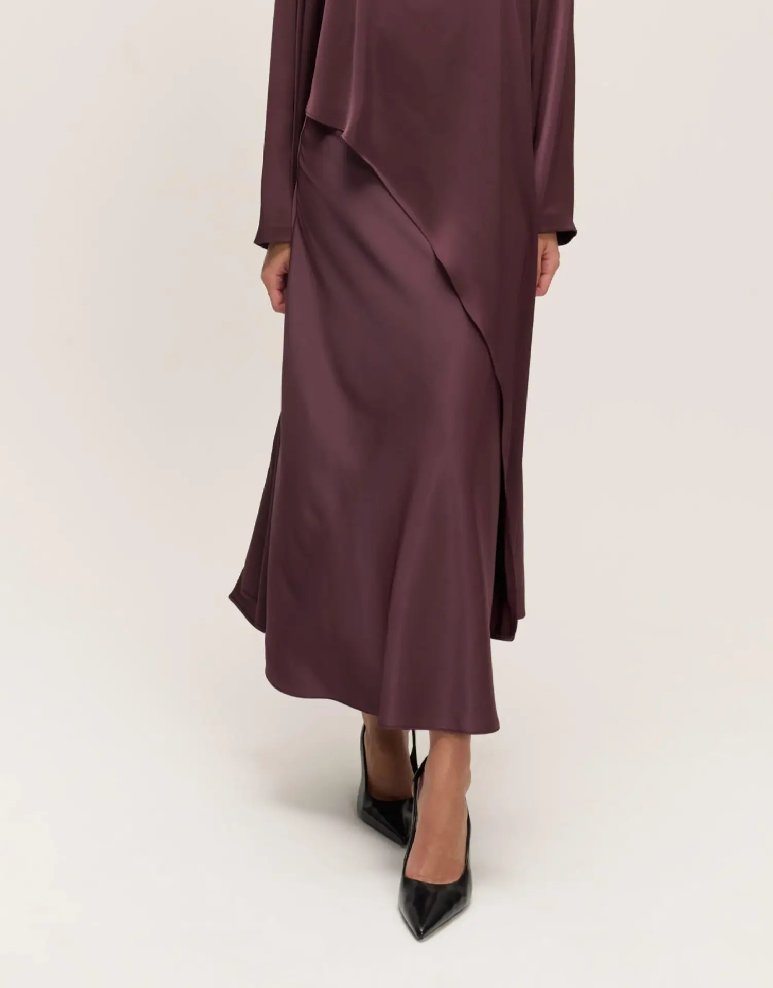 %100 Floş Viskon kumaşıyla hazırlanan bu zarif etek, akışkan dokusu ve doğal dökümlü görünümüyle modern ve feminen bir siluet sunar. Asimetrik kesimi ile hareketli bir form yaratan model, yürüdükçe zarifçe dalgalanan yapısıyla öne çıkar.