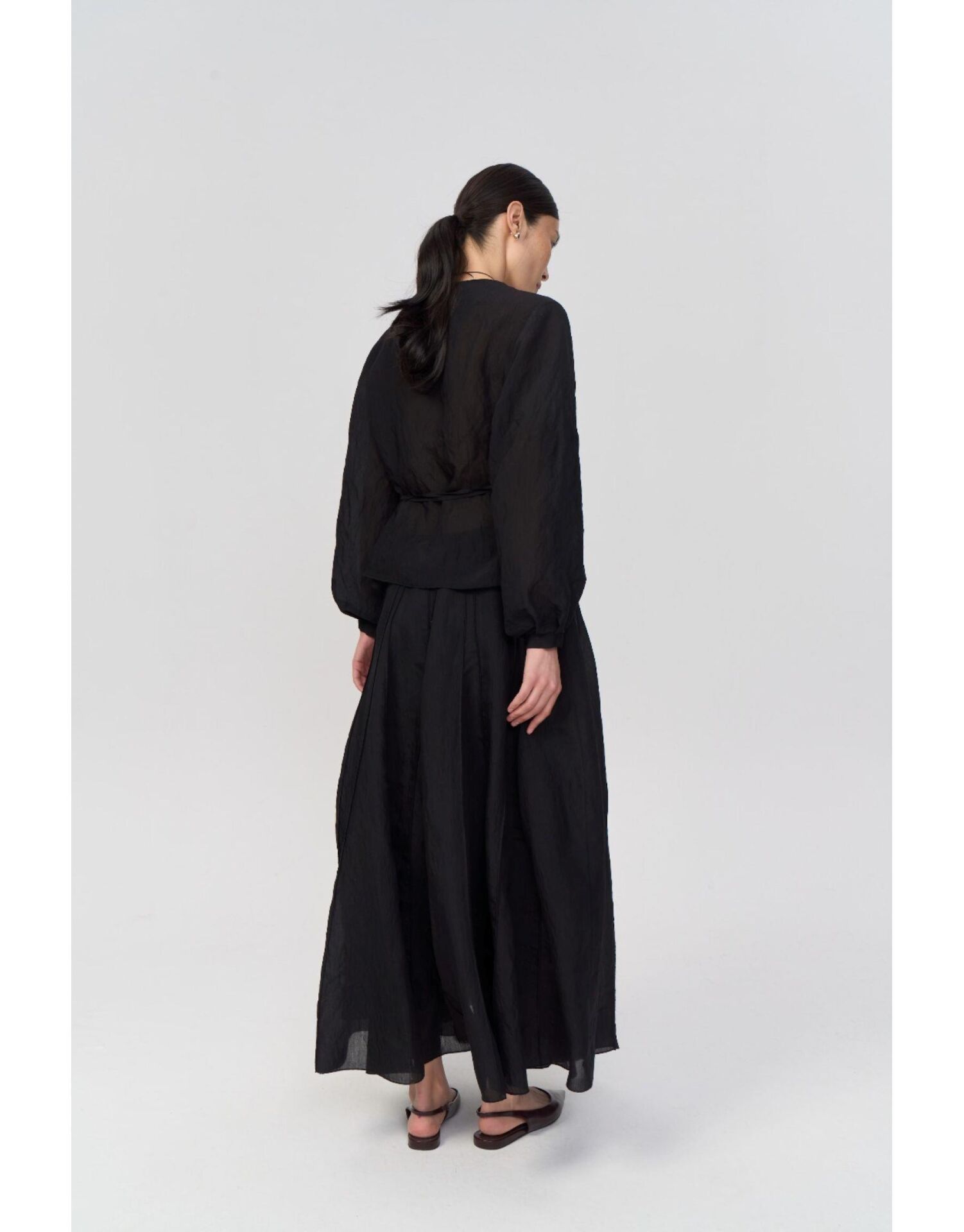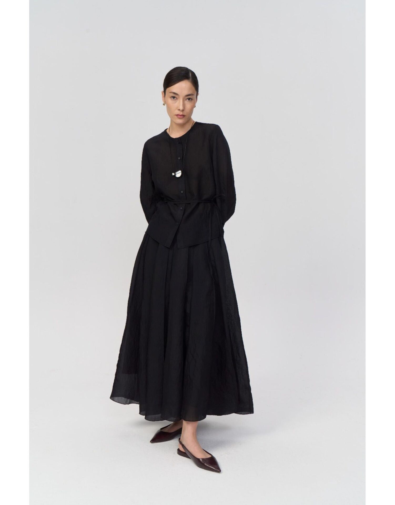Şerit overloklu, parçalı,yandan fermuarlı kloş etek.