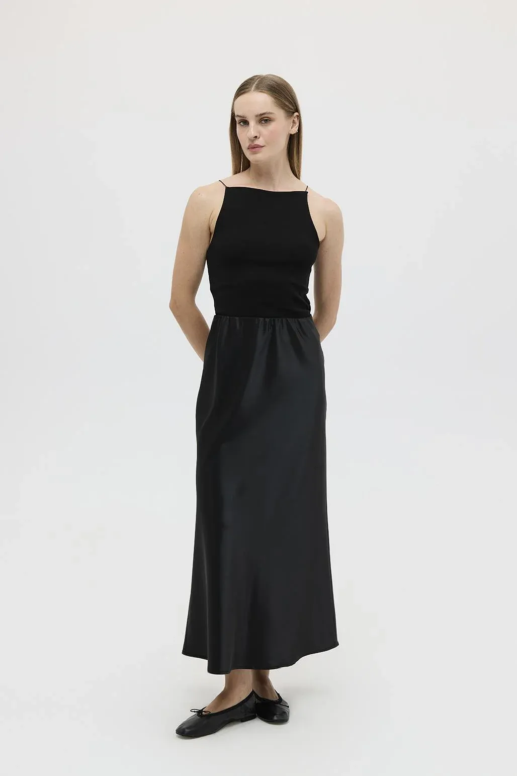 Saten kalem etek, trendlerin vazgeçilmezi olarak güçlü ve modern duruşuyla gardırobunuzun yıldızı olacak. Yumuşak dokusu ve şık kesimiyle, triko kazaklar, ceketler veya sweatlerle kolayca kombinlenebilir.