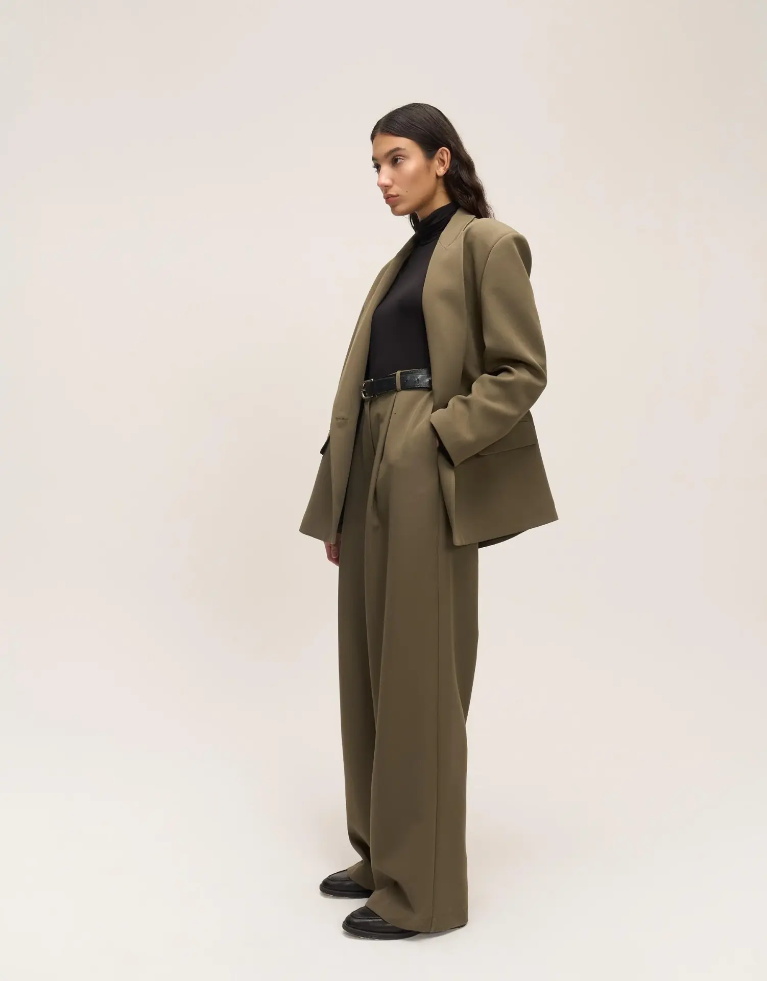 Akıcı yapıya sahip kumaşı sayesinde pantolon gün boyu rahat bir kullanım sağlar, dökümlü formu ile şık ve modern bir siluet oluşturur. Geniş paça kesimi, klasik stile modern bir yorum katarken aynı zamanda rahat hareket imkânı verir. Nötr zeytin tonu ise pantolonu mevsimsiz bir parçaya dönüştürerek gardırobunuzdaki pek çok üstle kolayca kombinleme fırsatı sunar.